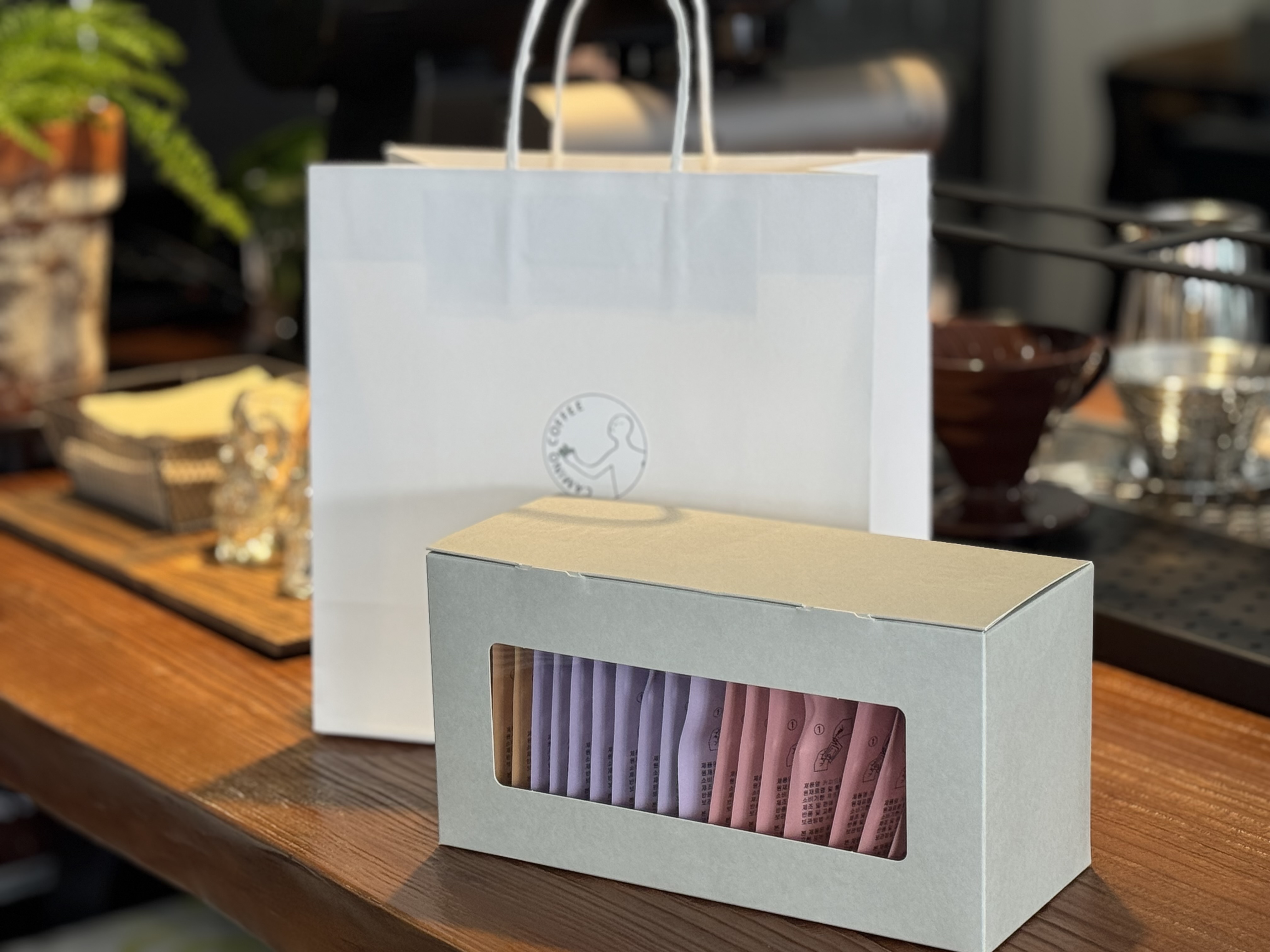 블랜드2종 싱글 3종 구성으로 4개씩 총 20개의 드립백을 포장상자에 담았습니다.